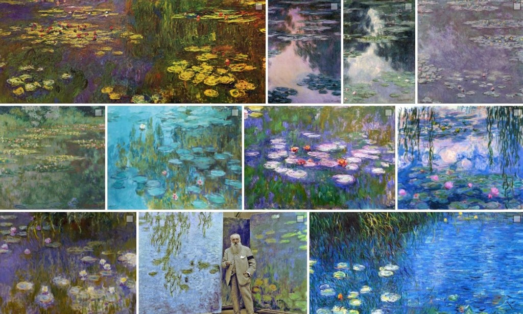 Ma famosissima fu la serie delle Ninfee, che arriva a contare circa 250 opere sulle ninfee che vedeva nel suo giardino in stile orientale della sua casa a Giverny. È il ciclo pittorico a cui Monet si dedica durante la vecchiaia, fino alla morte. Oggi le grandi tele ci trasmettono pace e armonia, ma per Monet fu molto difficile. La sua ricerca formale sembrava non arrivare mai a una conclusione, sembrava ci fosse sempre di più da indagare e sempre più lavoro da fare.