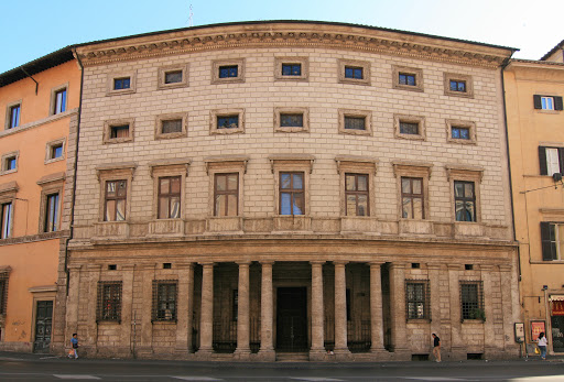 Questo palazzo ricorda la memoria dei teatri romani, propone un effetto prospettico-scenografico nel diverso allineamento delle colonne dell’atrio con il cortile. Inoltre la successione del cortile e dei loggiati alludono a una grandiosità non consentita dagli angusti e irregolari limiti spaziali, raggiunta con sorprendenti e raffinati esiti formali.