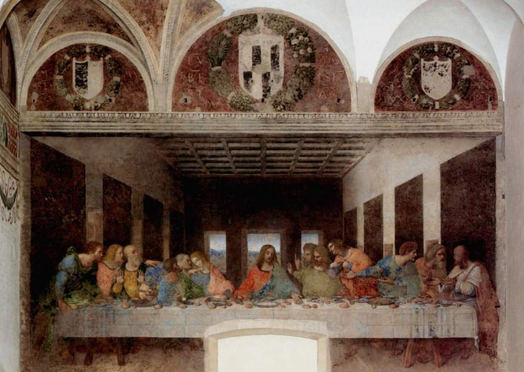 Capolavoro di Leonardo e del Rinascimento italiano in generale, Il Cenacolo o Ultima Cena è uno degli esempi più pregni di simboli e mistero. L’affresco rappresentala tavola con gli apostoli e Gesù al centro, punto di fuga su cui ricade l’attenzione. Racconta un momento sacro per la cristianità, quando Gesù fece la prima comunione secondo le leggende medioevali, apparve per la prima volta il Santo Graal.