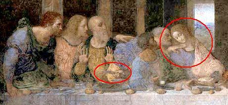 A tal proposito, i tratti gentili di Giovanni ricordano una donna, in particolare a Maria Maddalena (personificazione del Sacro Graal). Questo a prova del fatto che Leonardo credesse nell’unione tra Gesù e quest’ultima, idea sostenuta dalla fantomatica associazione massonica chiamata Priorato di Sion. Il problema fondamentale però è la rappresentazione della mano col coltello dietro la schiena di Giuda, che sembrerebbe priva di proprietario. Non appartenente a nessuno dei personaggi, viene ricondotta ad un personaggio sacro che adotta degli atteggiamenti eretici.