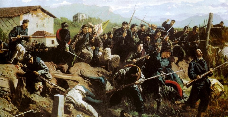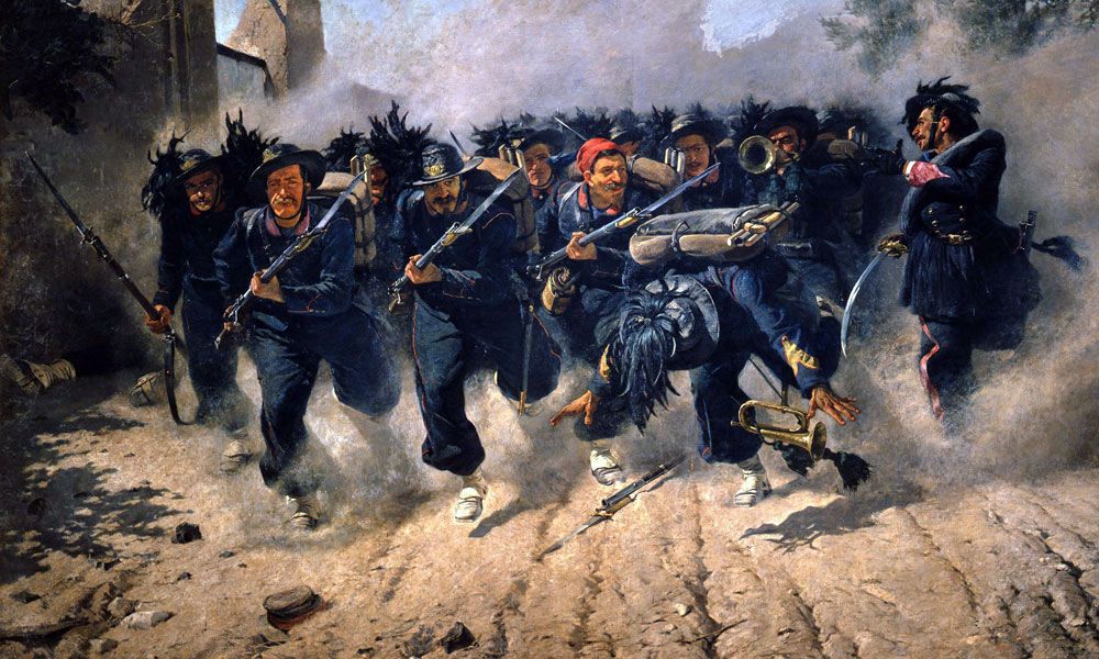 Un altro esempio di opera Risorgimentale fu La battaglia di Varese, realizzata da Federico Faruffini. Combattuta fra i Cacciatori delle Alpi comandati da Garibaldi e gli austriaci, ci offre l’equivalente di uno scatto fotografico, di straordinaria efficacia comunicativa. Alcuni giovani soldati con poche armi, valicano una trincea e si scagliano contro il nemico. Lo spettatore viene immerso nella battaglia, come se ne fosse partecipe.