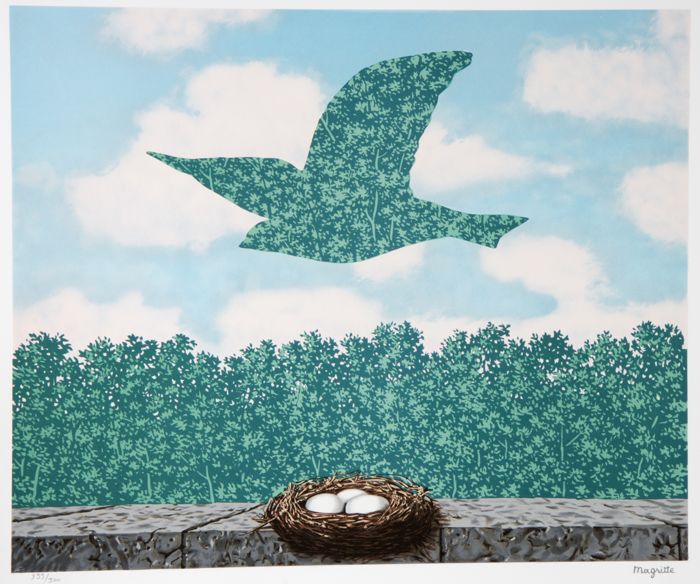 Le printemps di Renè Magritte risulta un’opera sofisticata e surreale, colma di simboli e illusioni, così come vuole lo stile dell’artista. Il pittore usa elementi comuni e familiari per stravolgere la visione della realtà oltre i confini dell’apparenza. La colomba in volo ha il corpo fatto di alberi e foglie, che si ripetono anche nel bosco sottostante con la stessa fitta trama. Sopra un muro di pietra è, inoltre appoggiato un nido contenente tre uova, simbolo della fertilità della primavera. Primavera che riscontriamo anche nel cielo azzurro e le nuvole bianche che rappresentano l’atmosfera inondata di calore e di luce della bella stagione.