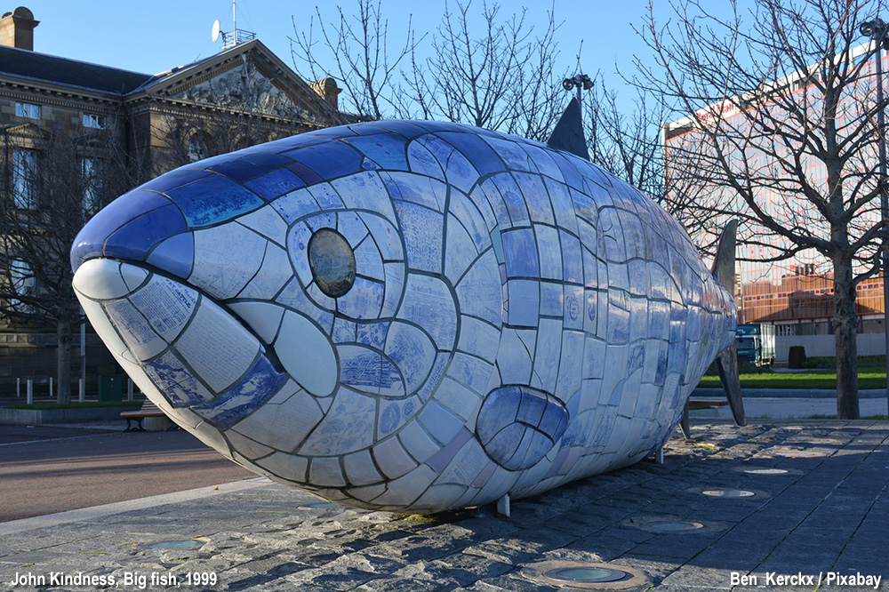 Solo negli ultimi decenni il pesce è tornato alla ribalta, ma in forme completamente nuove. Non più all’interno di quadri e affreschi ma come grandi sculture e installazioni, oppure fotografie moderne. Negli ultimi anni, la figura acquatica viene spesso realizzata con materiali di scarto quasi a volerci dire che anche quello che consideriamo spazzatura, può continuare a generare bellezza.