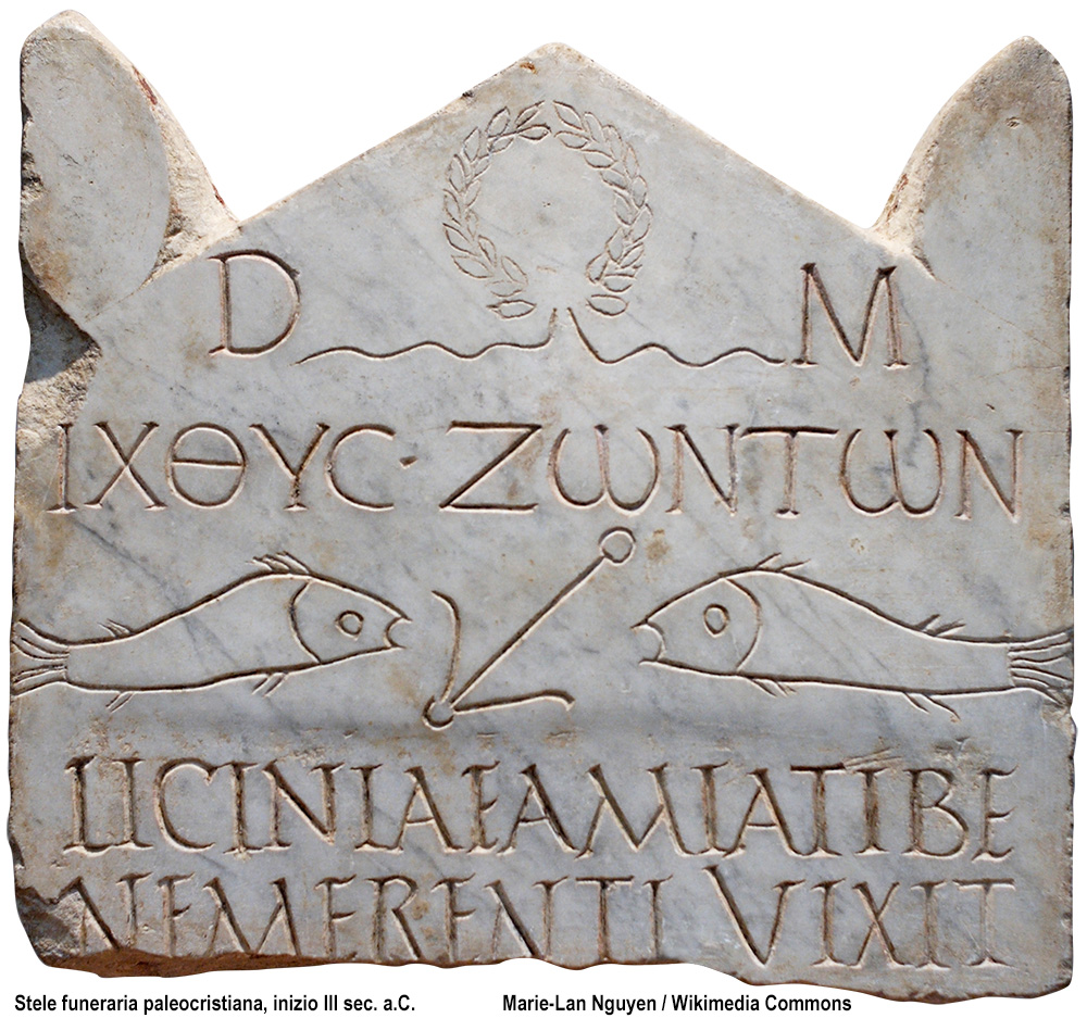 Con l’avvento del Cristianesimo, il pesce riappare sulle tombe in forme stilizzate, questa volta per simboleggiare Cristo, simbolo che deriva dal nome greco del pesce (ICHTYS) che corrisponde alla frase “Gesù Cristo figlio di Dio Salvatore”. La sua immagine fu legata agli episodi evangelici della chiamata dei pescatori, della pesca miracolosa e della moltiplicazione di pani e pesci. Fu per molti anche legato al simbolo del Battesimo.