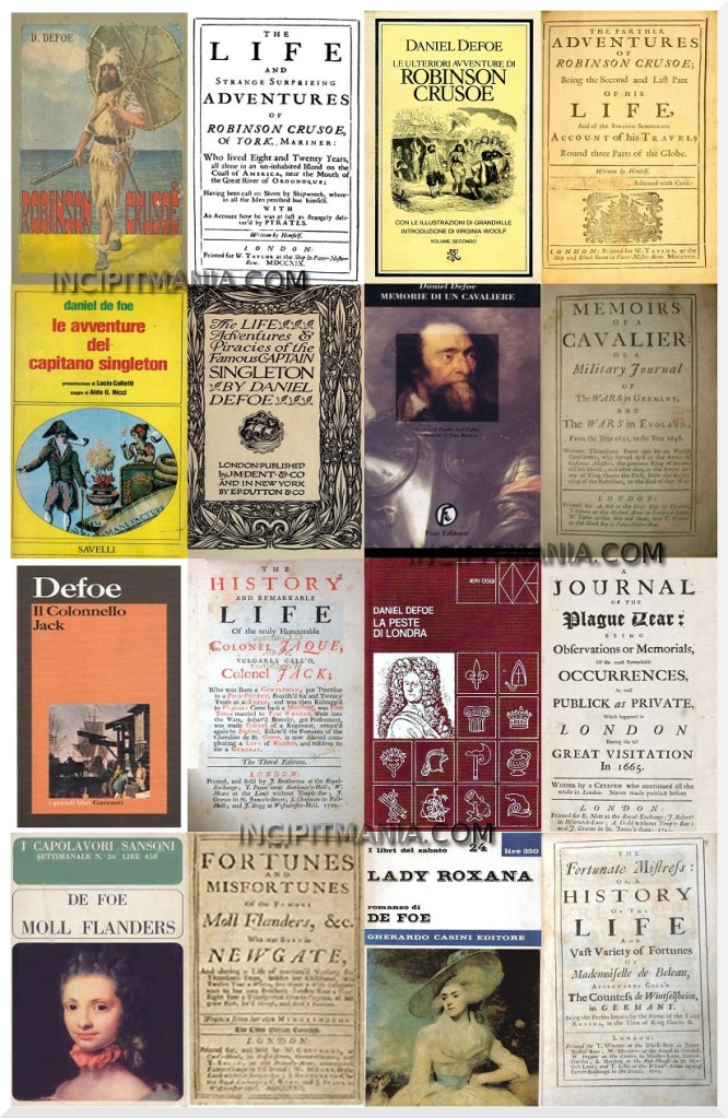 Scoperta così una fonte di rapidi guadagni, si diede alla composizione di romanzi d’avventura. Così nacquero anche Memoirs of a Cavalier, racconto della rivoluzione puritana; Captain Singleton, vita d’un filibustiere; The Fortunes and Misfortunes of the famous Moll Flanders, autobiografia di una ladra e prostituta; A Journal of the Plague Year, descrizione della peste di Londra; The History of Colonel Jack, vita di un borsaiolo che diventa giacobita; The fortunate Mistress autobiografia d’una cortigiana d’alto borgo.