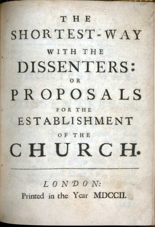 Ma alla morte di Guglielmo d’Orange, ebbe un grave colpo per la sua carriera politica, in quanto fu incarcerato per l’opera The Shortest Way with the Dissenters, per aver diffamato la Chiesa d’Inghilterra. Uscito nel 1704, da subito aprì il giornale The Review, che uscirà tre volte a settimana, diventando una pietra miliare del giornalismo inglese.