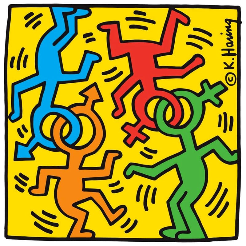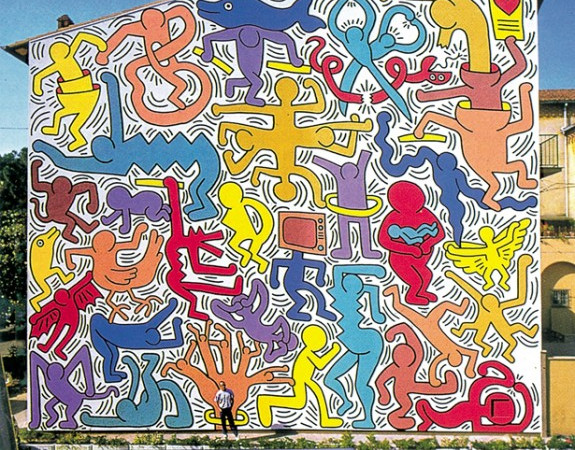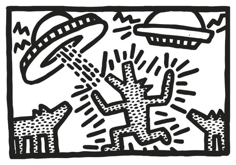 Il famoso street artist, che aveva studiato semiotica alla School of Visual Arts a New York, fu da sempre affascinato dai diversi codici di linguaggio, che utilizzò per esprimersi nelle sue opere. Nell‘alfabeto di simboli pittorici simili a pittogrammi, creato da Haring, ogni figura ricorrente non è casuale o fine a sé stessa, ma legata ad una serie di fonti e messaggi che contribuiscono al senso più ampio che l’opera vuole comunicare. I suoi disegni quindi si rivelano molto più complessi di quello che una lettura superficiale farebbe intendere.