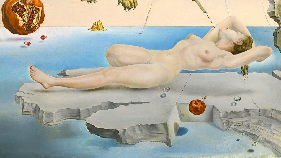 Sogno causato dal volo di un’ape intorno a una melagrana un attimo prima del risveglio, è il titolo completo di quest’opera. Ispirato ad un sogno della amata moglie e modella Gala, è un dipinto visionario e surreale, che gira attorno al tema del sogno e dell’inconscio. Creò questo quadro subito dopo che il ronzio di un’ape aveva disturbato il sonno della moglie. Il quadro è quindi il racconto visivo di questo passaggio dal mondo del sogno al momento del primo risveglio, momento in cui si è in grado di raccontare il sogno seppur in modo confuso.