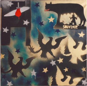 Franco Angeli, fu un pittore italiano nato a Roma il 14 Maggio del 1935. Conosciuto come esponente dell’arte astratto-materica in Italia, ha sperimentato tecniche e materiali vari, attraverso una ricerca indirizzata a superare l’informale. Divenne famoso per essere uno degli artisti appartenenti alla “Scuola di Piazza del Popolo”, un gruppo di artisti romani tra cui Mario Schifano e Tano Festa.