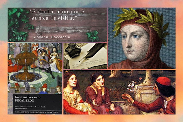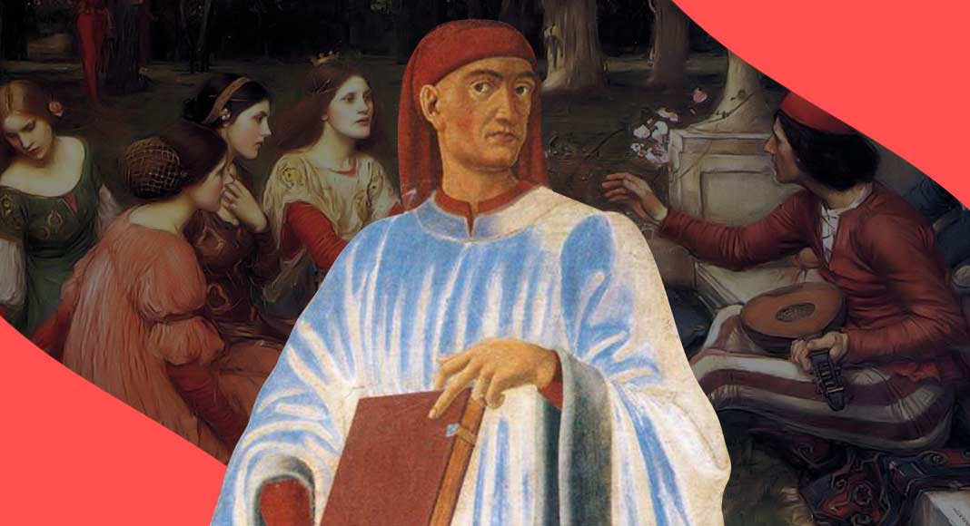Il Decameron, fu la sua opera più celebre, e consiste in una raccolta di novelle che ad oggi definiamo un assoluto capolavoro e un punto di riferimento per tutta la letteratura umanistica in prosa successiva. Secondo la tradizione medievale, l’opera venne divisa in modo ordinato, attraverso una cornice di partenza che raccoglie 100 novelle, distribuite su 10 giorni da cui scaturisce il titolo dell’opera (deca = dieci; emeron = giorno). L’autore racconta la storia di una brigata formata da sette ragazze e tre ragazzi, che per sfuggire alla peste nera del 1348, decidono di rifugiarsi in una villa in campagna, e di intrattenersi raccontandosi a vicenda dieci novelle al giorno, una per ogni componente del gruppo.