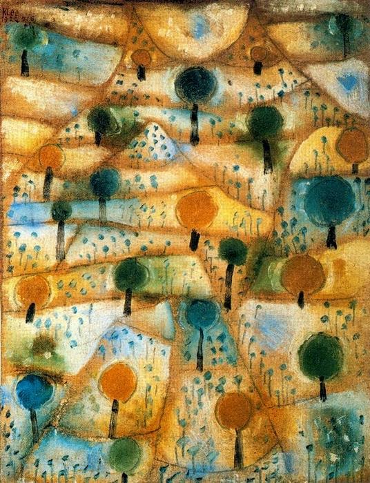 A concludere, l’arte soprattutto nell’ultimo secolo, non venne rappresentata nella sua essenza, come in precedenza, ma venne adoperata dagli artisti per dare un significato visivamente emozionale alla musica. Fra tutti, ricordiamo Paul Klee che sviluppò diverse teorie sul binomio arte e musica, una tra queste riguardava l’utilizzo del grafema come elemento segnico, simile ad un pentagramma. Una sua opera interessante è il Paesaggio alberato ritmico, dove lo sfondo è visto come un pentagramma idealizzato nel quale trovano luogo note e grafemi musicali come alberi ed elementi naturali.