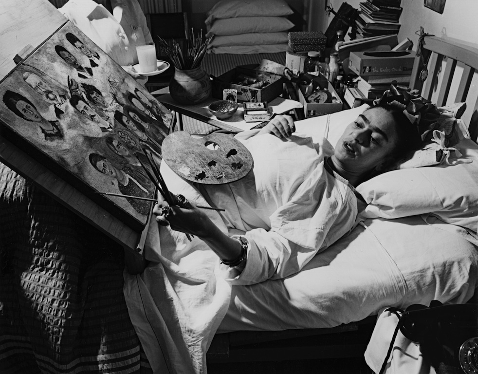 Fu durante la lunga convalescenza che iniziò a dedicarsi alla pittura, e nonostante il dolore fisico e psichico, continuò ad essere una ragazza ribelle, anticonformista e vivacissima. La disabilità la tenne costretta a riposo nel suo letto con il busto ingessato, ma questa circostanza forzata la spinse a leggere tanti libri ed a dipingere molte opere. Per sostenere questa passione, i genitori le regalano un letto a baldacchino con uno specchio sul soffitto, in modo che possa vedersi, e ritrarsi. E’ proprio in questo momento che inizia la serie di autoritratti.