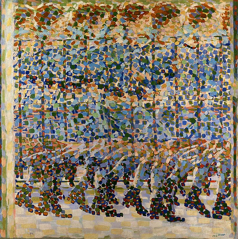 Questi furono anni di grande creatività per Balla che spostò la sua ricerca da un linguaggio realista tipico di fine secolo, ad una ricerca artistica d’avanguardia che gli permise anche di avere un ruolo più attivo all’interno del gruppo futurista. Negli stessi anni firma anche il manifesto Ricostruzione futurista dell’Universo, dove teorizza come il dinamismo pittorico e il dinamismo plastico si collegano alle parole in libertà e all’arte dei rumori. Inizia a lavorare sull’onomatopea, a comporre tavole parolibere e a progettare scenografie mettendo in evidenza i collegamenti tra l’immagine e la dimensione fonetico-rumorista.