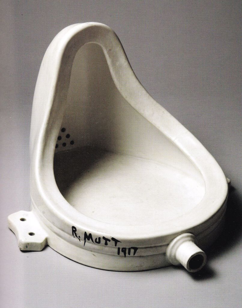 Il ready-made più noto però del 1917 con il titolo è Fontana. Duchamp espose, con lo pseudonimo inventato di R. Mutt, un comune orinatoio pubblico da parete rovesciato, firmato e datato. Ovviamente questa opera d’arte non venne per niente apprezzata, e fu criticata dagli organizzatori della mostra che rifiutarono di esporre l’oggetto. Egli ha preso un articolo usuale della vita, limitando il proprio intervento alla scelta di un oggetto, che decontestualizzato, assume un nuovo significato, un nuovo modo di pensare quest’oggetto, attraverso l’interpretazione dell’artista. Per lui, quindi, il significato di “arte” non è più fare, mostrando competenza tecnica, ma scegliere, operando a livello di intelletto.