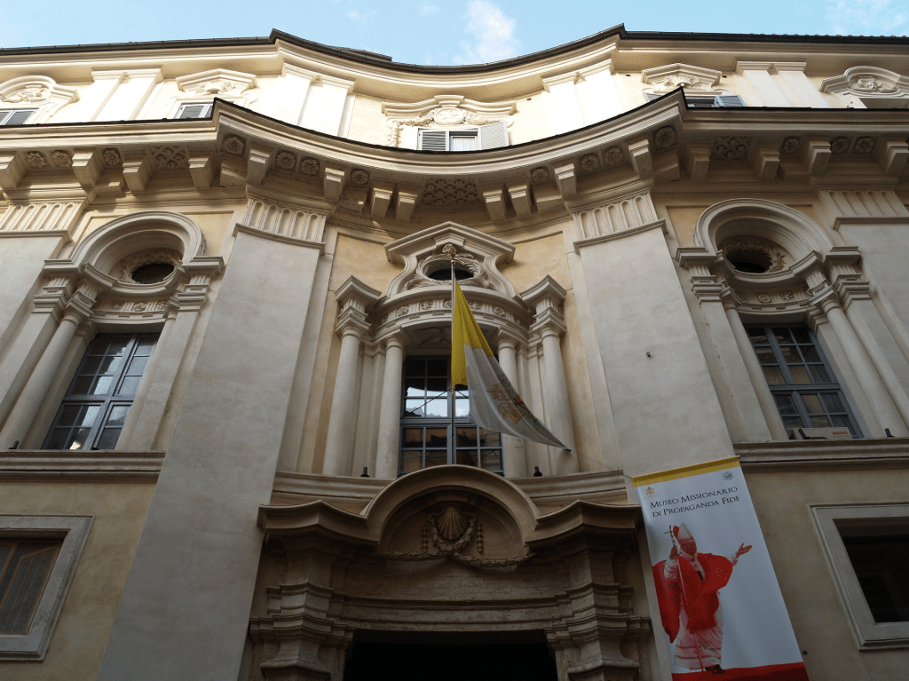 In seguito alla morte di Urbano VIII, la carica pontificia fu occupata da Innocenzo X Pamphilj, che favorì, in ambito artistico, l’estro di Borromini, a scapito del Bernini. Fu proprio il nuovo papa a commissionargli la rifacimento del palazzo di Propaganda Fide, che si affaccia su Piazza di Spagna. Questo palazzo, adibito a Sede della Congregazione per l’Evangelizzazione dei Popoli, guidata dai Gesuiti, fu un progetto iniziato da Bernini, ma portato a termine da Borromini nel 1665, che demolì le preesistenze dando una nuova vita all’edificio. Di straordinaria importanza è la creazione della facciata in movimento, considerata una dei massimi lavori borrominiani e barocchi presenti a Roma.