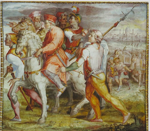Ovviamente però con l’accrescere del potere mediceo, le famiglie rivali si misero sulla difensiva. Fu infatti nel 1430, che le famiglie Strozzi e Albizzi, si sentirono minacciati dal potere di Cosimo de’ Medici, e con alcuni pretesti provano a mandarlo in esilio. Inizialmente questi tentativi non ottennero successo, anche grazie all’opposizione di un altro grande magnate, Niccolò da Uzzano, ma alla morte di quest’ultimo avvenuta nel 1432, le due famiglie riuscirono nei loro intenti. Il 5 settembre del 1433, infatti, Cosimo viene incarcerato nel Palazzo dei Priori con l’accusa di aspirare alla dittatura.