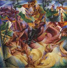 Allo scoppio della Prima Guerra Mondiale Boccioni, come molti intellettuali, fu favorevole all’entrata in guerra dell’Italia, e si arruola con volontario nel Battaglione Lombardo Ciclisti, partendo per il fronte insieme a Marinetti, Russolo, Sant’Elia e Sironi. Ma durante un’esercitazione militare, nel 1916 ebbe un incidente a cavallo, e perderà la vita in questo banale ma tragico incidente.