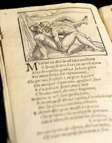 Questi componimenti ovviamente gli crearono molti problemi, al punto che fu costretto all’esilio e a girovagare per l’Italia fino al 1523, quando venne eletto a papa il suo antico signore Giulio de’ Medici col nome di Clemente VII. Tornato a Roma riprende la sua attività letteraria, dando vita alla prima redazione manoscritta de La Cortigiana, una commedia in cui gli intrecci amorosi sono ricchi di allusioni sessuali. L’Aretino fu anche autore, in questo periodo, di sedici Sonetti lussuriosi a tema erotico con tono fortemente licenzioso. Ovviamente anche queste due opere scatenarono l’ira del potente vescovo Gianmatteo Giberti che addirittura assoldò un sicario per ucciderlo.