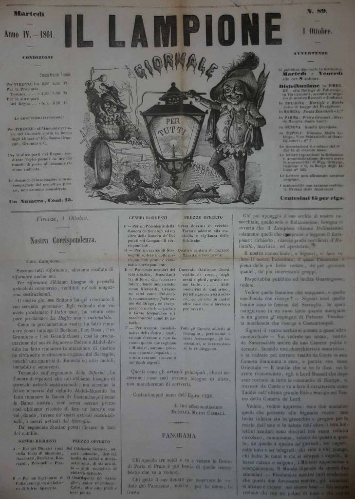 Ma nel 1848, allo scoppio della Prima guerra d’indipendenza, si arruolò volontario combattendo con il battaglione toscano a Curtatone e Montanara. Tornato a Firenze fondò uno dei maggiori giornali umoristico-politici dell’epoca, chiamato Il Lampione, soppresso nel 1849. Nel suo ruolo di giornalista, descrive la realtà toscana cogliendone i lati spiritosi e bizzarri, fatta di intrighi e racconti dei famosi caffè illuministi, che hanno dato il via, partendo da discorsi quasi comici, a rivoluzioni linguistiche e letterarie. Il giornalismo umoristico lo portò ad iniziare una collaborazione con numerose testate umoristiche, che affrontavano argomenti artistici, teatrali e letterari.