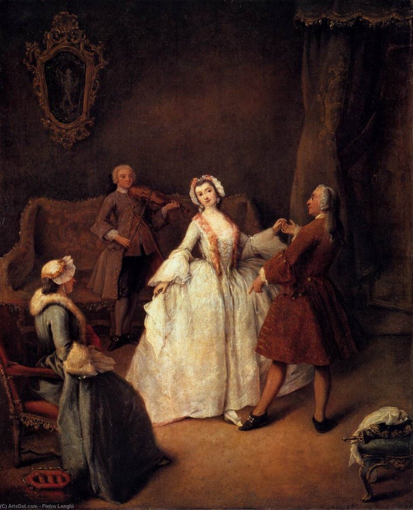 Importante pittore italiano del 700, Pietro Longhi, nasce il 15 Novembre del 1701. Nato nella Repubblica marinara di Venezia, divenne famoso in tutto il mondo per essere il pittore del tipico Rococò dell’alta borghesia mercantile veneziana. Le opere del Longhi hanno costanti riferimenti al mondo teatrale, che nascono in parallelo con le opere del commediografo Goldoni, che crea un nuovo tipo di teatro ispirato alla vita reale. Allo stesso modo l’artista, propone nella sua pittura, un’attenta osservazione e la cronaca del costume sociale di un’intera epoca.