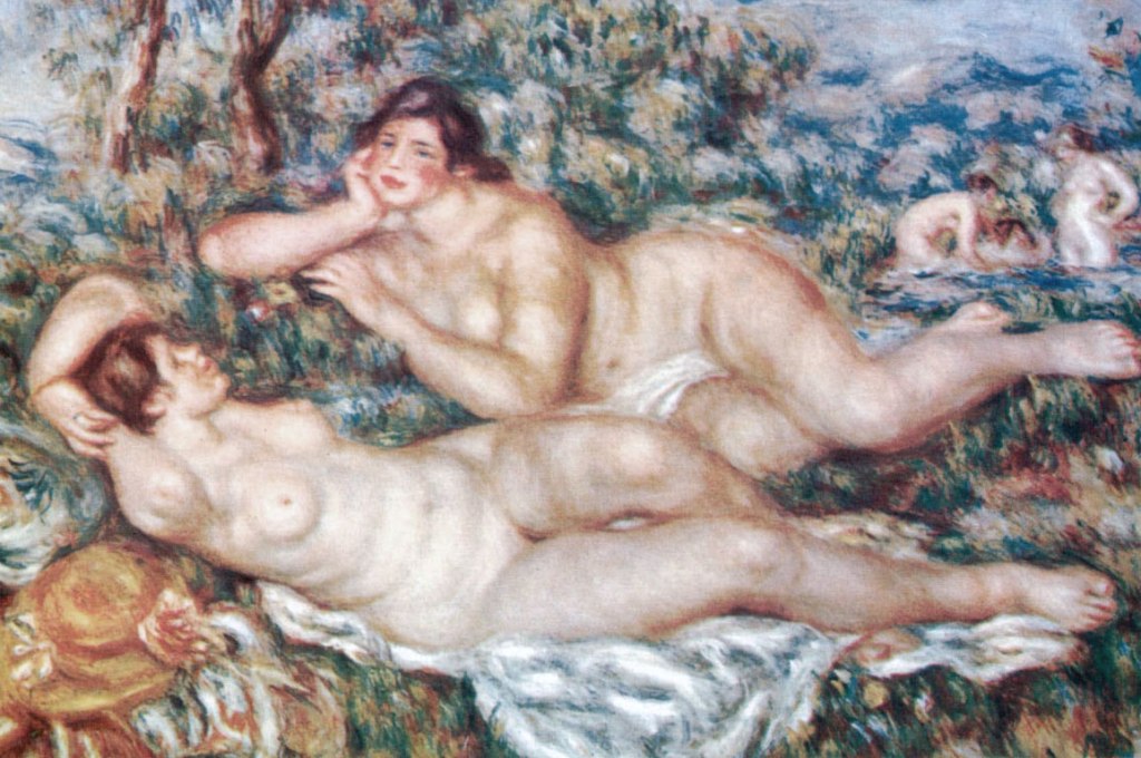 Lo studio degli antichi maestri italiani, avrà su di lui un’influenza retrospettiva fortissima, tanto da determinerà il suo progressivo allontanamento dallo stile degli impressionisti. Si iniziò a manifestare l’esigenza di studiare le forme, tanto da renderle modellate, quasi scultoree. L’evoluzione di Renoir però non si ridusse all’imitazione di questi modelli, ma ne plasmò le leggi tramite il suo istinto creativo e rigeneratore. Si concentrò così sulla qualità del disegno, sui dettagli e sui contorni, a discapito di quella magia che caratterizzava da sempre le sue tele. I suoi toni infatti diventarono seri e la luce fredda.