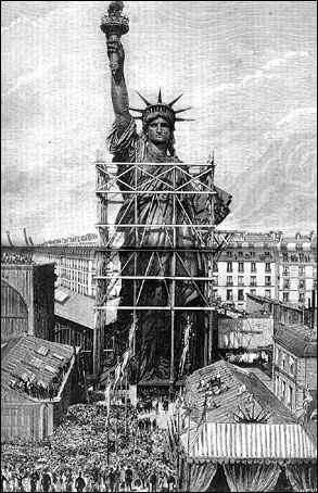 Dopo i travagli dovuti alla non facile costruzione, la presentazione del monumento terminata avvenne nel 1884, donata dalla Francia agli Stati Uniti, come simbolo di amicizia tra i due Paesi. per il trasporto in America, però la statua venne nuovamente smontata, i cui pezzi furono imballati e inviati via mare agli Stati Uniti, dove giunse all’Isola della Libertà il 19 giugno 1885 e di conseguenza ricostruita.