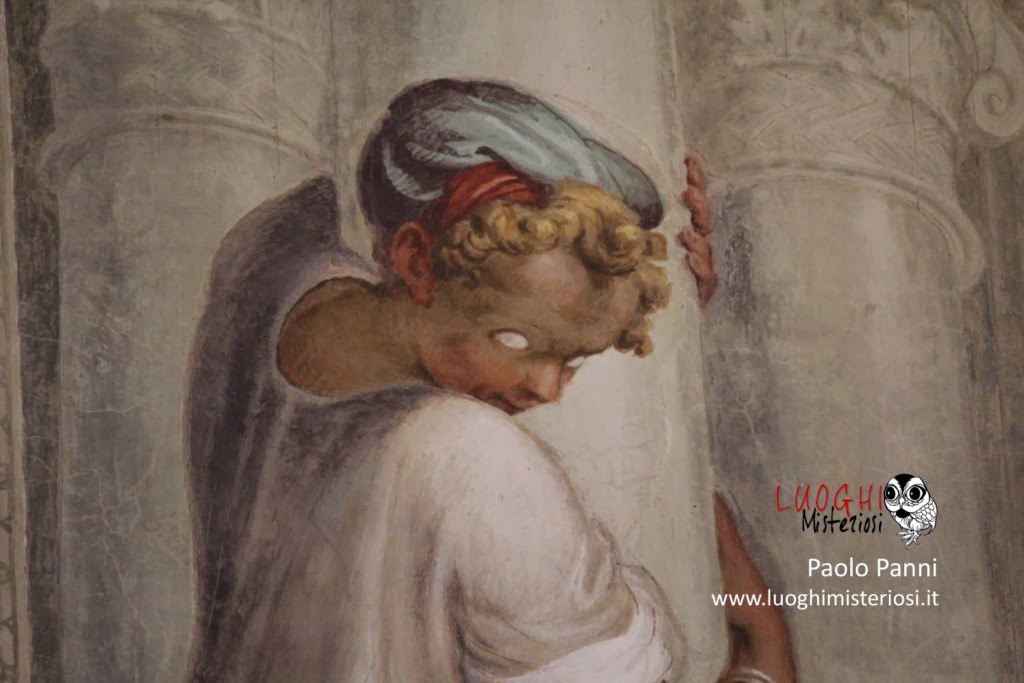 E se proprio fosse così, allora perchè l’opera non fu successivamente restaurata con l’aggiunta di nuove pupille realizzate con tecniche tradizionali sopra l’errore? Il mistero rimane. E’ inoltre curiosa un’iscrizione non lontana all’opera, realizzata nel terzo schienale del complesso ligneo del coro sotto il grande organo. Essa riportata addirittura in dialetto cremonese recitava: “el torto va in tute tache”, ovvero le cose malfatte finiscono in nulla.