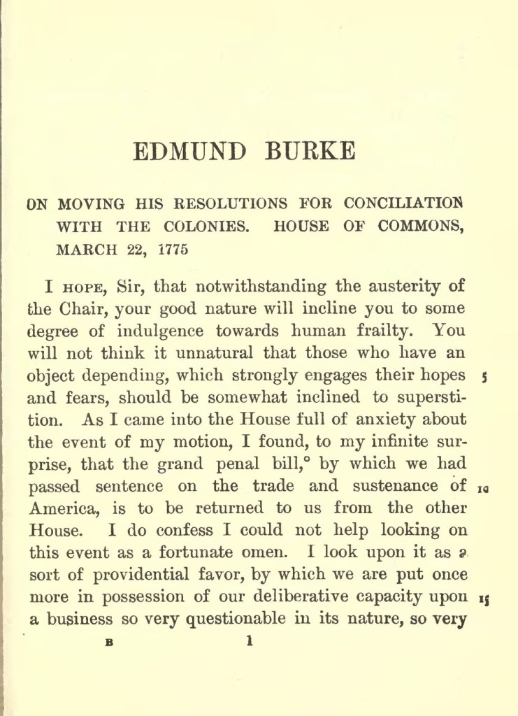 Quest’ultimo nel 1765, venne nominato primo ministro da re Giorgio III di Hannover, e di conseguenza Burke venne eletto alla Camera dei Comuni. In breve divenne la guida intellettuale e il portavoce della corrente Rockingham del partito Whig, sedendo nei banchi dell’opposizione per la maggior parte della propria carriera politica. Ed è proprio durante questo periodo che lo statista-pensatore pubblica le sue opere più note, fra cui Thoughts on the Causes of the Present Discontents, Speech on the Conciliation with the Colonies, e molte altre.