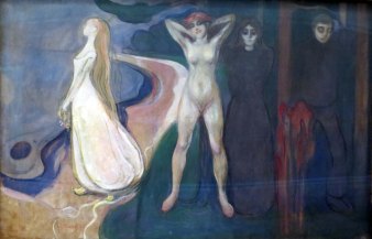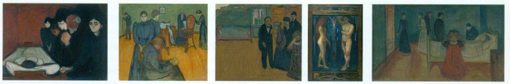 Un’opera di questa sezione è infatti La vita e la morte(metabolismo), descritte attraverso il peccato originale di Adamo ed Eva. Egli estende la definizione di metabolismo, ovvero un’energia che fluisce nel processo dell’organismo, così come gli esseri viventi contribuiscono al fluire della vita e della morte. L’opera Morte nella camera della malata, è strettamente autobiografica, perchè tratta della morte della sorella Sophie. Non risalta la sofferenza della giovane, ma vuole mostrare la fredda sofferenza che prova la famiglia. La morte, vera protagonista del dipinto, viene rappresentata più che dal punto di vista fisico, da quello psicologico.