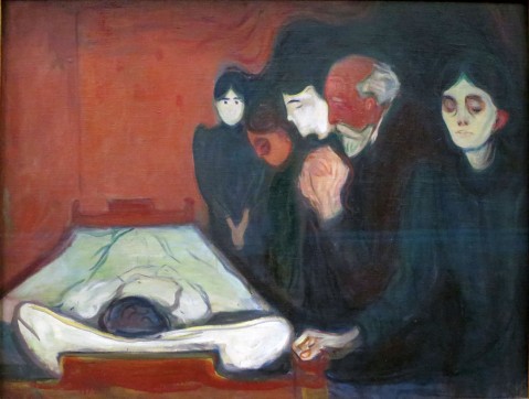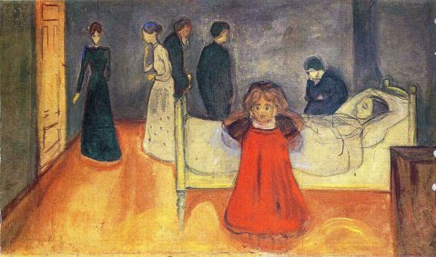 Nell’ultima serie di opere, intitolata Morte, Munch non vuole ritrarre il fine fisico della vita, ma il senso di solitudine che il fine vita lascia, riducendo le persone ombre di se stesse. Tutto rimanda alla morte, tema principale e tetro, che si riconduce all’esigenza propria del pittore di esprimere questo pensiero costante. Egli infatti dipinge ciò che sente, trasponendo sulla tela le emozioni che lo pervadono, soprattutto in seguito ai vari lutti che affrontò nella sua vita.