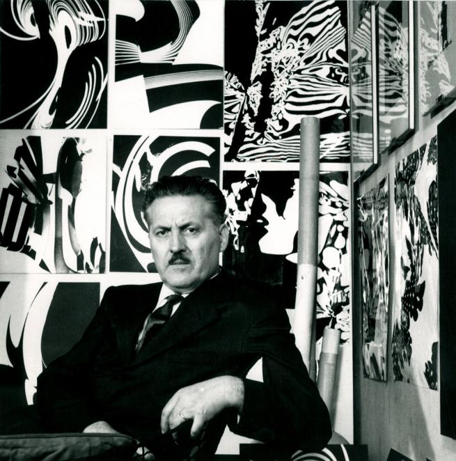 Grafico e artista italiano, Franco Grignani nasce il 4 Febbraio del 1908. Conosciuto a livello internazionale per aver dato vita allo sperimentalismo visivo d’analisi, sviluppando i propri interessi nell’ambito ottico visivo, conducendo ricerche analitiche attraverso non solo mezzi pittorici ma anche fotografici. Sperimenta con fotogrammi, fotomontaggi, sovrimpressioni ed elaborati grafici, basandosi su teorie percettive, in particolare sulla Psicologia della forma.
