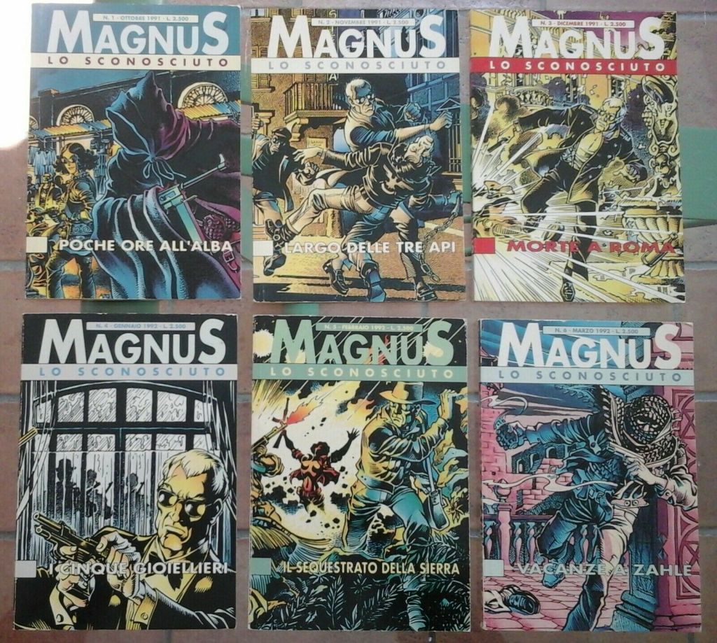Durante questi anni, incomincia a disegnare alcune brevi storie, firmandosi definitivamente con il nome di Magnus, pseudonimo derivante dal motto goliardico “magnus pictor fecit“. Appassionato a questo mondo, decide di contattare i vari editori di Milano, tra cui l’Editoriale Corno. Qui incontra Max Bunker, sceneggiatore con il quale realizza un nuovo personaggio a fumetti Kriminal.