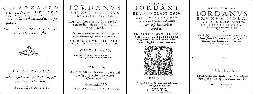 Dalla Svizzera si trasferisce a Tolosa, in Francia, dove si dedicò all’insegnamento, per poi andare nel 1582 a Parigi. Anche se nella capitale francese rimase solo per due anni, fu qui che realizzò le sue prime opere, fra le quali De umbris idearum, Ars memoriae e Il Candelaio. Dal 1583 fu a Londra, dove prosegue la produzione letteraria con sei opere filosofiche in forma dialogica, i cosiddetti “dialoghi londinesi”, i quali sposano le teorie copernicane sulla natura e sull’eliocentrismo, ma abbracciano allo stesso tempo l’idea di infinità dell’universo.