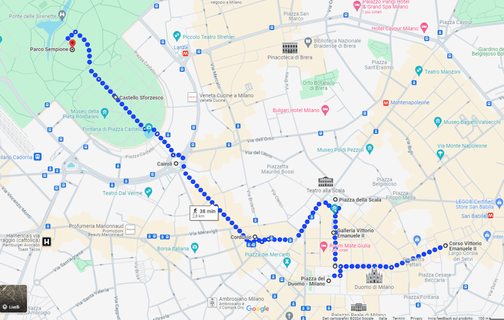 Uscendo dal lato posteriore della Galleria, ci troveremo davanti il Teatro della Scala, sfarzoso e antico teatro sede della lirica italiana. Vi consiglio anche qui una visita guidata all’interno per ammirarne tutte le curiosità e bellezze. Usciti dal Teatro, mi sono districata tra le vie di Milano, per arrivare a Piazza Cairoli, centralissima e con una posizione strategica per ammirare l’intera facciata del Castello Sforzesco.