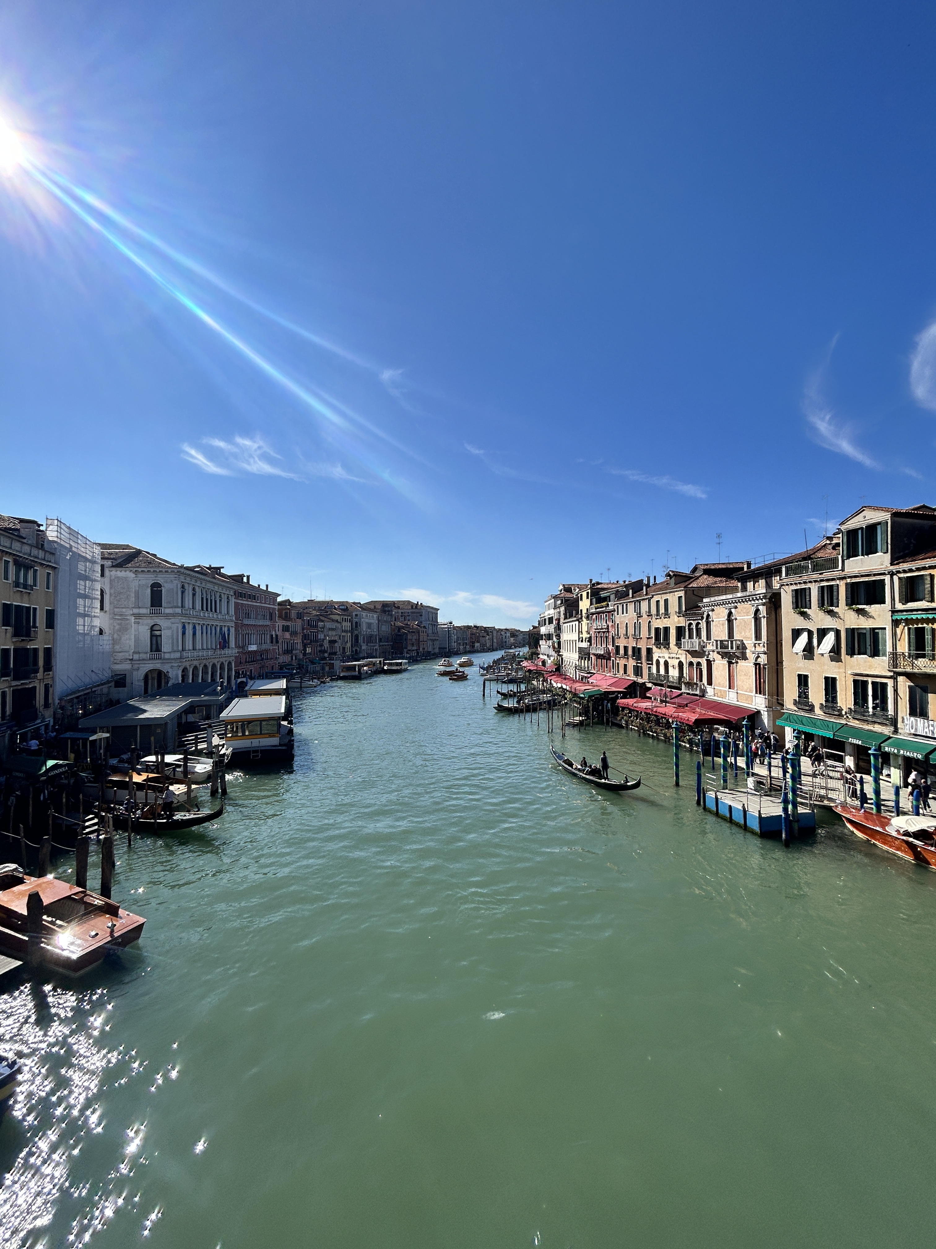 Dopo essere scesi dal treno alla stazione di Santa Lucia, vi ritroverete subito catapultati nei famosi canali veneziani. Passeggiando tra i vicoli stretti e costeggiando gli antichi palazzi, arriverete davanti alla Basilica di Santa Maria dei Frari. Dopo una visita veloce, dirigetevi verso il Mercato di Rialto, un mercato coperto con chioschi di pesce, frutta e verdura.