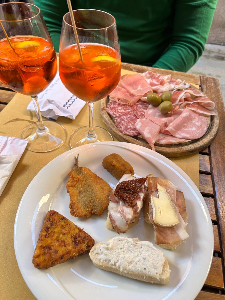 Vi consiglio di fermarvi a mangiare nei dintorni, nei famosi Bacari, ovvero delle tipiche osterie veneziane dove si trova una vasta scelta di vini e stuzzichini chiamati cicchetti. Oltre di assaggiare lo Spritz, nato in Veneto, assolutamente da provare sono i cicchetti con il baccalà mantecato. CONSIGLIO : Bar all’Arco