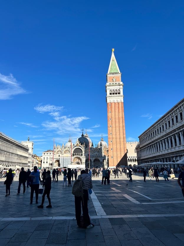 Considerata una delle più famose piazza monumentali del mondo, Piazza San Marco risulta essere il cuore pulsante e luogo simbolo di Venezia. Con la sua forma trapezoidale, accoglie il complesso monumentale dell’omonima basilica San Marco, arricchita da mosaici bizantini, e il campanile di San Marco, da cui si possono ammirare i tetti rossi della città. Costeggiando la piazza, in direzione del mare vi ritroverete davanti il Ponte dei Sospiri, altro fondamentale ponte della città.