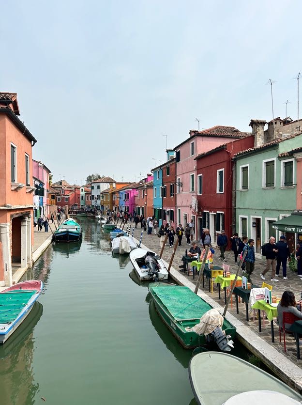 Seconda tappa è invece Burano, caratteristica per le sue casette tutte colorate, intervallate da piccoli canali. In quest’isola invece è di gran rilievo la produzione artigianale del merletto, anche oggi possiamo vedere le signore sedersi alle porte delle loro case colorate per tessere un merletto meraviglioso decorato in modo insolito e bello.